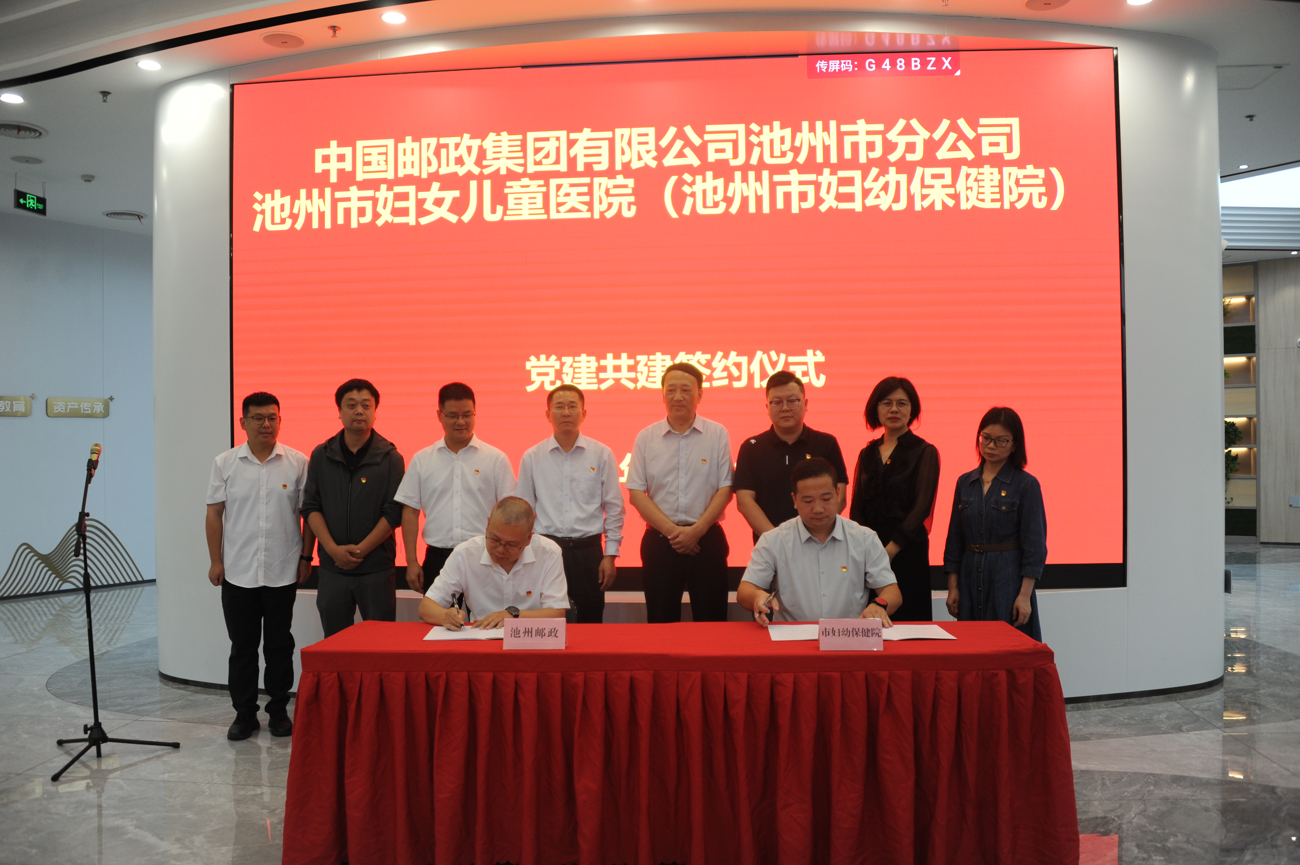 2025年10月16日下午,中国邮政集团有限公司池州市分公司1楼大厅内气氛庄重而热烈,一场意义非凡的党建和创签约活动在这里隆重举行。池州邮政公司与池州市妇女儿童医院(池州市妇幼保健院)携手,共同开启党建合作新征程。
