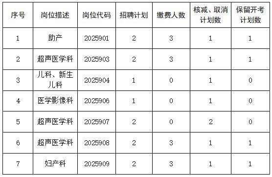 根据《池州市妇女儿童医院(池州市妇幼保健院)2025年公开招聘编外工作人员公告》规定和报名确认等情况,经研究,现将报名后达不到规定开考比例的部分岗位招聘计划核减、取消情况予以公告。岗位取消且缴费成功的原报考人员,按规定可于2025年9月29日12:00-17:00改报其他符合条件的岗位,逾期视为自动放弃。
